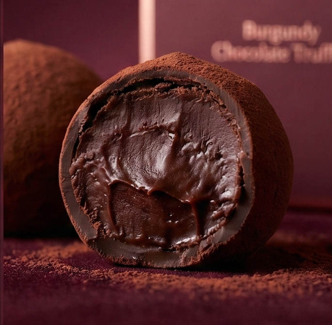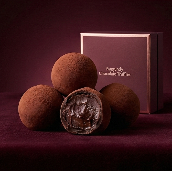 Luxurious burgundy chocolate truffles with a rich, velvety center. Elegant, indulgent, and perfect for gifting or savoring as a premium treat.