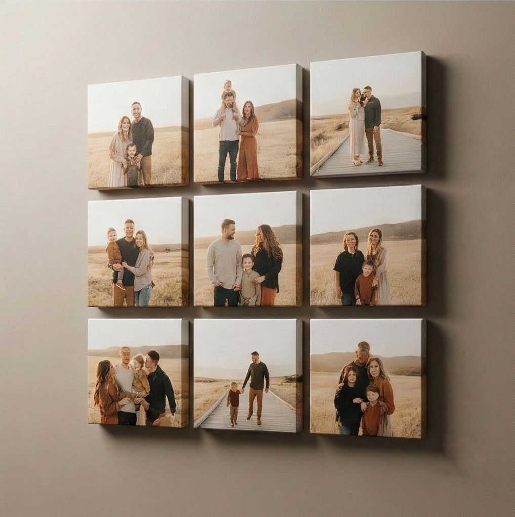 This canvas collage frame brings multiple photographs into a single, cohesive display. Each image is printed on premium-quality canvas and stretched over a sturdy wooden frame, ensuring vibrant colors, crisp details, and a gallery-ready finish. The elegant design complements modern and traditional interiors, making it an eye-catching centerpiece on any wall.