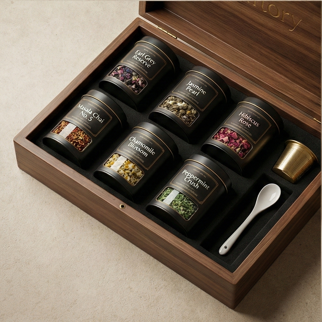 Options may include green tea, herbal infusions, fruit blends, masala chai, floral teas, and exotic black teas. Packed in elegant tins or luxury gift boxes, they create a refined and thoughtful gift for tea lovers.
