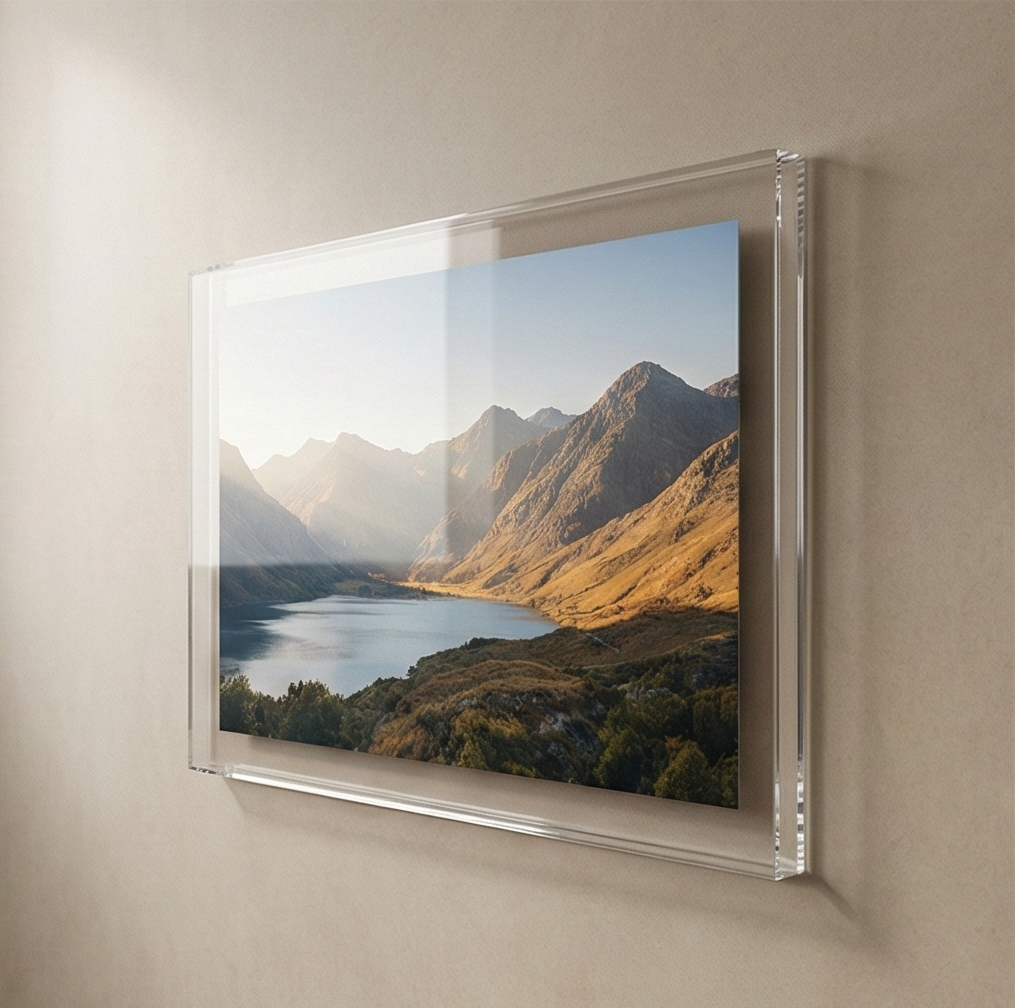 A modern large wall acrylic frame that elevates your favorite memories. Sleek, minimalist design with crystal-clear acrylic brings photographs to life and adds contemporary elegance to any wall.